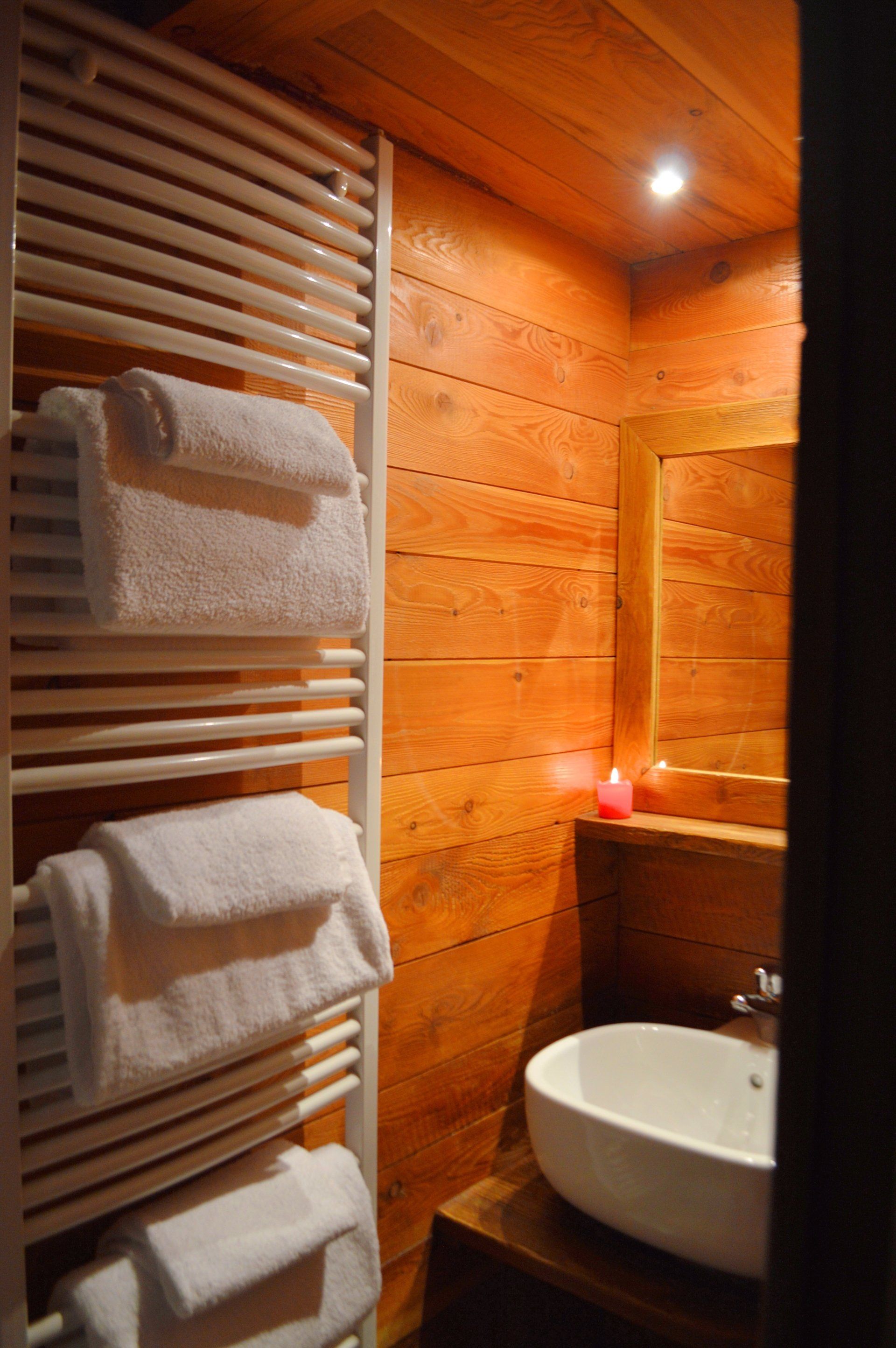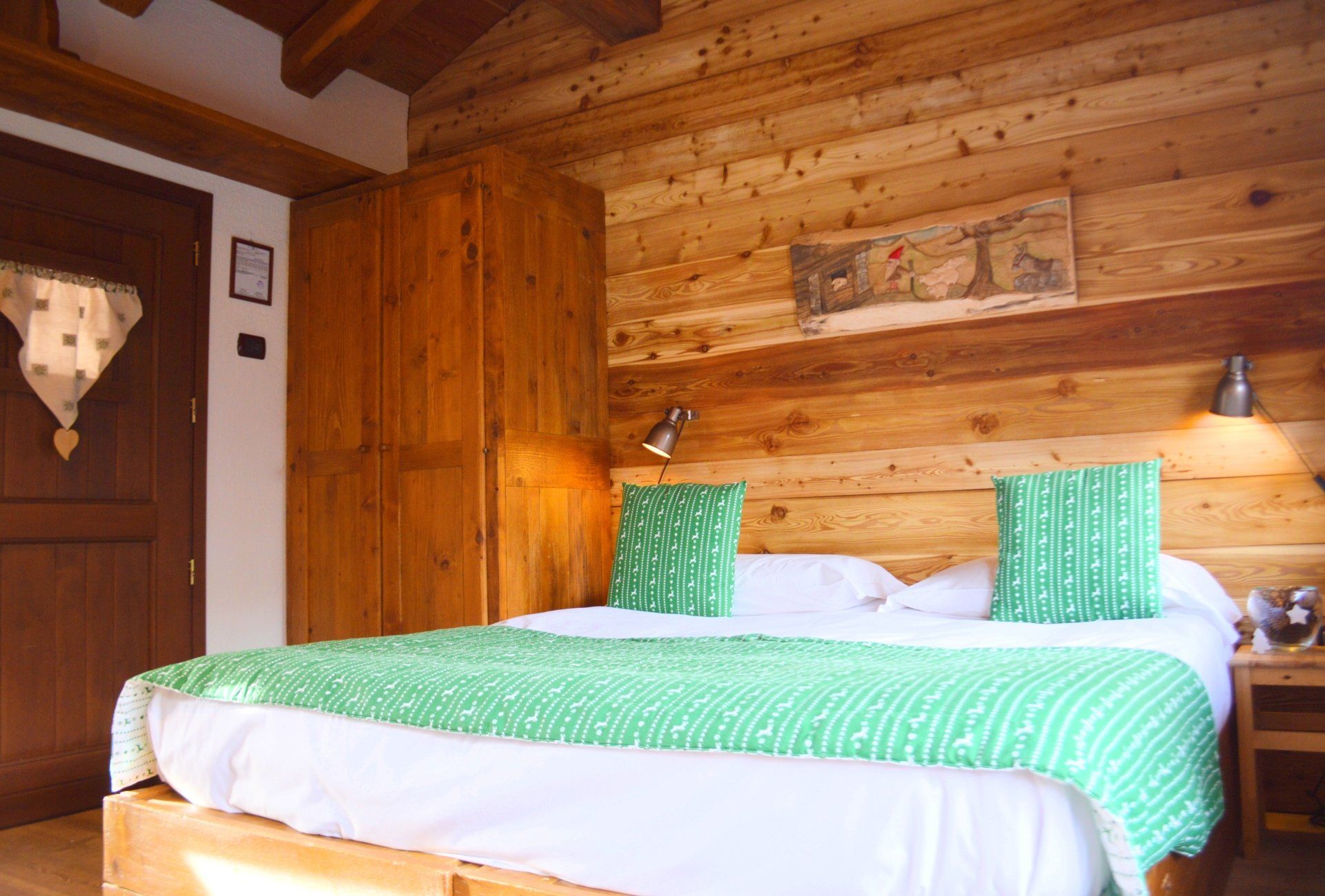 The chalet is dotted with warm details. A careful and refined choice of colors: red and green, traditional shades, create intimate atmospheres, imbued with intimate familiarity.