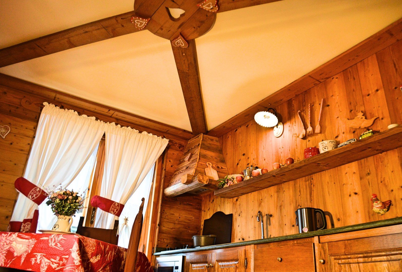 Ad accogliere i nostri ospiti: il calore della stufa che crea atmosfere d'altri tempi. L'angolo cottura attrezzato è dotato di forno a micronde, piano cottura a gas e frigorifero.